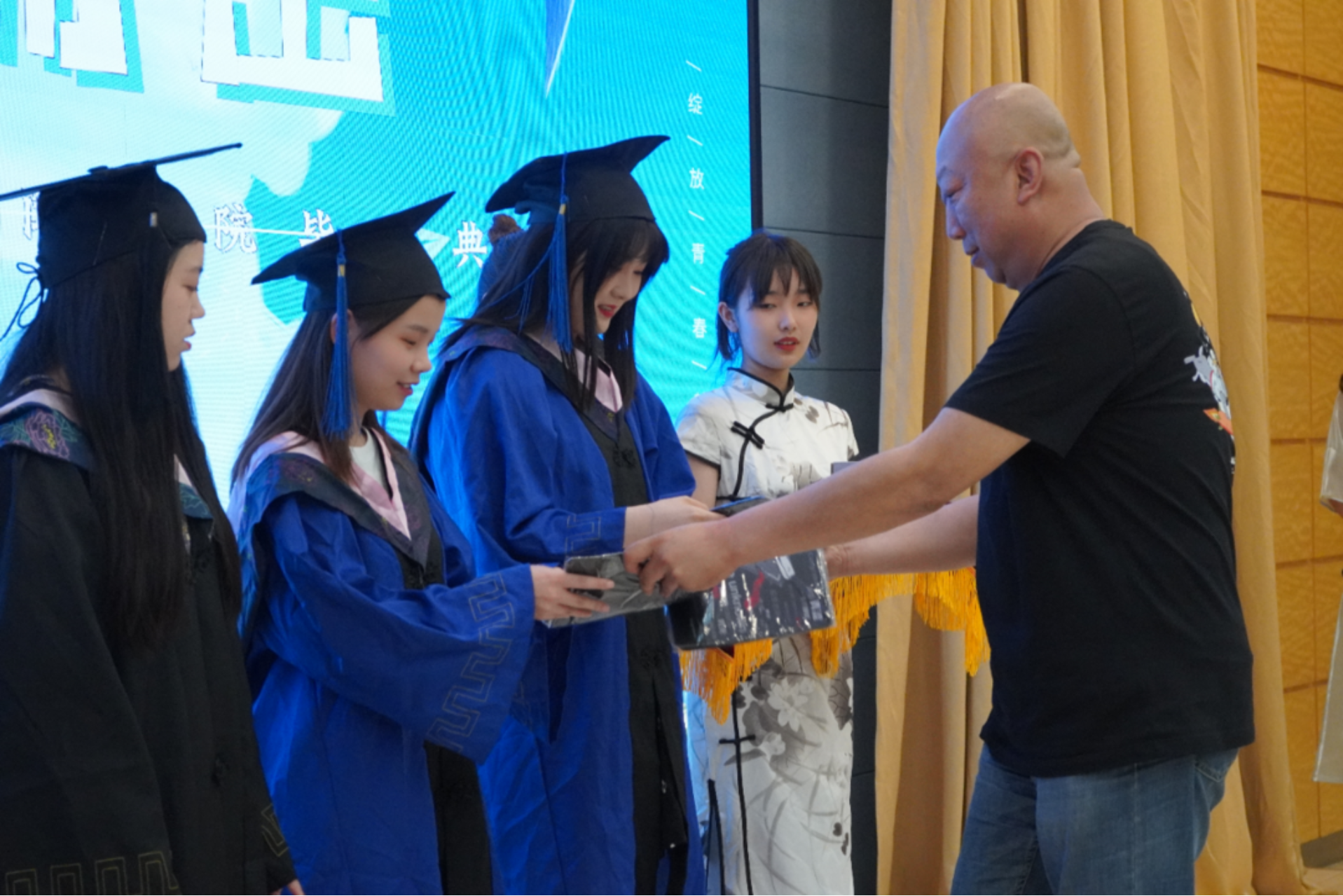 优秀校友代表孟新利学长分享自己的工作经历,为同学们提供了宝贵的经验。他也感谢母校的栽培,表达了对毕业生的美好亲切的祝福,使同学们获益良多;他还带来了标有山西大学的文创礼品,分发给毕业生,希望他们心系母校、心系学院。