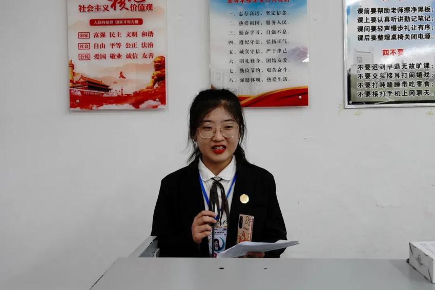 成雪同学作为代表向新生分享交流自己的学习经验,她向大家分享了如何能更好的适应从高中到大学身份的转变,怎样高效听课以及学习英语的方法,在生活和学习两方面帮助新生更好的了解大学生活,最后她还鼓励大家要多多参加社会实践,提高自己的能力。